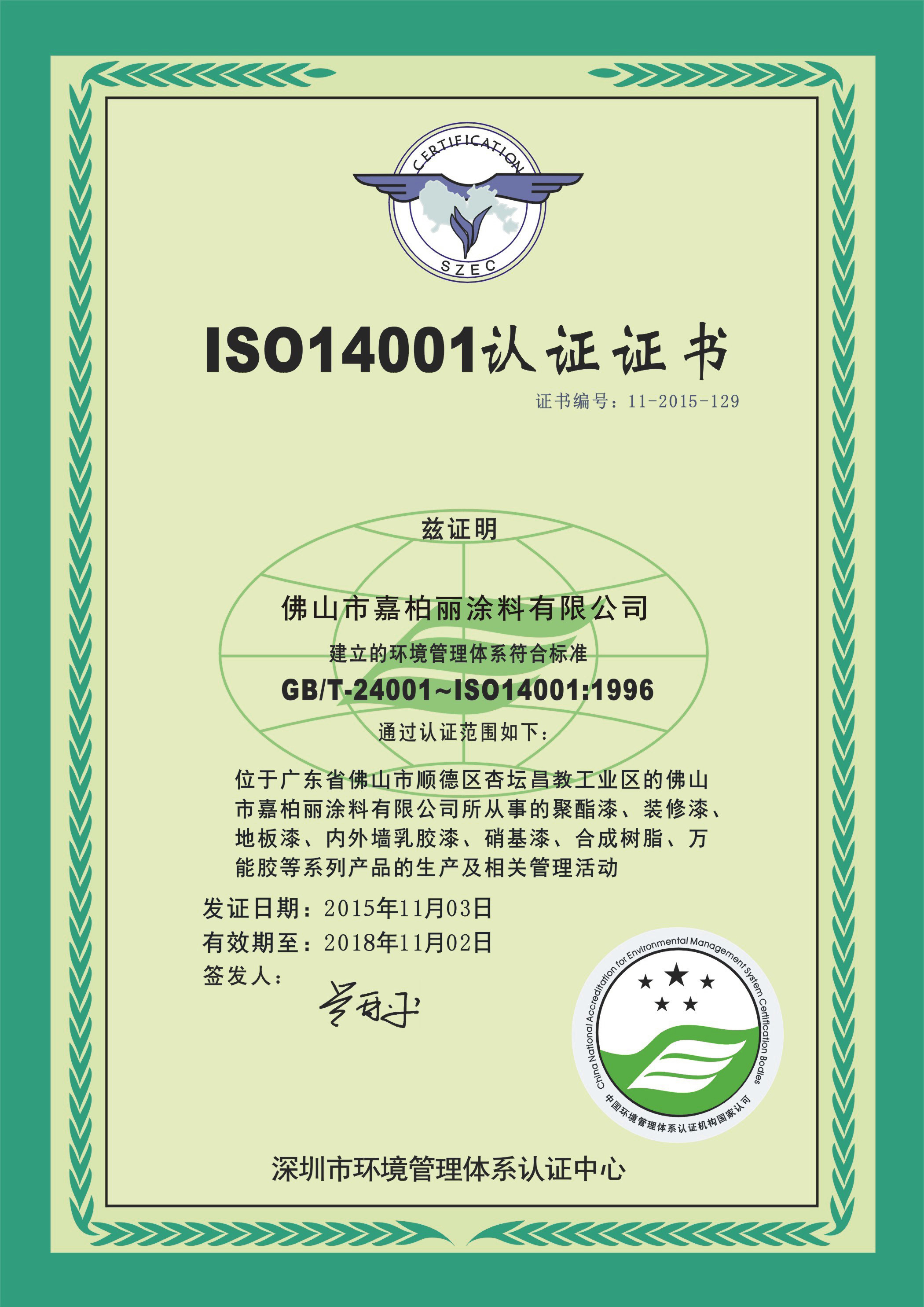 環(huán)保認(rèn)證 嘉柏麗三型環(huán)境標(biāo)志