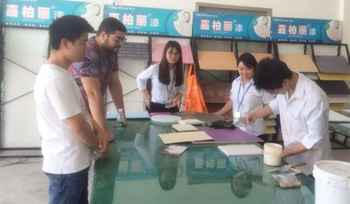 法國友人Aissam,在了解我司的一系列產品工藝過程中,自然流露出法國人友善和藹的一面,從他選購的7D色藝漆、真石漆等款式更是讓人深深感受到法國人天生擁有的浪漫情懷。