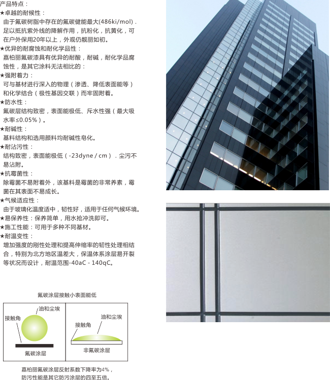 嘉柏麗氟碳漆環(huán)保性高,符合國(guó)家的環(huán)保質(zhì)量標(biāo)準(zhǔn)要求,符合節(jié)能減排的趨勢(shì)發(fā)展要求,并具有超耐候、高自潔性、優(yōu)異防腐性能、強(qiáng)附著力、高裝飾性、性價(jià)比高。氟碳外墻涂料應(yīng)用前景一片光明,將會(huì)在高層建筑和高檔住宅上得到廣泛認(rèn)可。