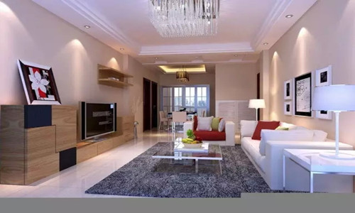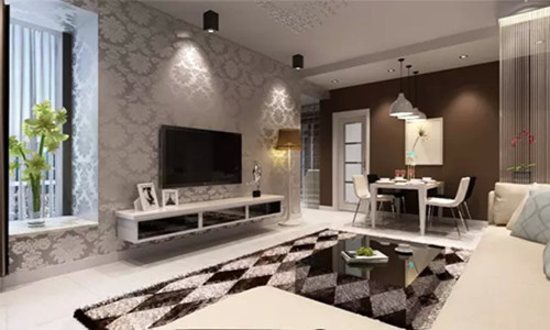 ▼ 簡(jiǎn)約色調(diào)是甚為推薦的客廳主色,配合那一抹柔和的燈光投射,綠色植物也為之綻放盛開(kāi),環(huán)保墻漆花紋略帶動(dòng)感,呈現(xiàn)整個(gè)客廳格調(diào)動(dòng)靜相宜,心情天天都美到極點(diǎn)啦。