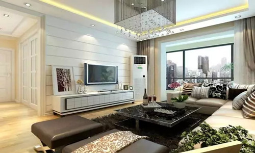 ▼ 整個(gè)客廳空間的墻面、窗都是最普通的白色。不同材質(zhì)、不同大小的白色營(yíng)造出很好的層次感,吊燈、落地窗點(diǎn)綴顯簡(jiǎn)潔大氣,皮質(zhì)沙發(fā)讓人有安全感。