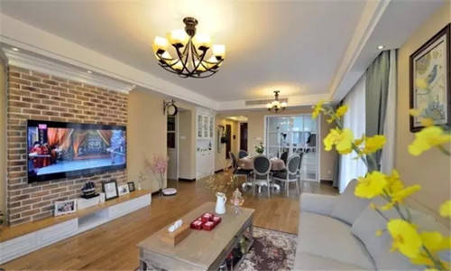 ▼ 映入眼簾的是電視背景墻那片復(fù)古磚,如果你是個(gè)愛(ài)好看明星電視劇的粉絲,豈會(huì)少得在茶幾上泡上一壺茶,盛上可口的小食,開(kāi)始現(xiàn)場(chǎng)直播快意人生呢。